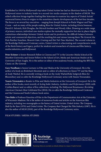 Peter Krämer is a Senior Research Fellow in Cinema and TV in the Leicester Media School at De Montfort University, and a Senior Fellow in the School of Art, Media and American Studies at the University of East Anglia. He is the author or editor of ten academic books, including the BFI Film Classic on The General. Gary Needham is Senior Lecturer in Film and Media at the University of Liverpool. He is the author of a book on Brokeback Mountain and co-editor of collections on Queer TV and the films of Andy Warhol. He is currently writing a book on the Andy Warhol/Edie Sedgwick films for Bloomsbury and co-edits the Routledge Hollywood Centenary series with Yannis Tzioumakis. Yannis Tzioumakis is Reader in Film and Media Industries at the University of Liverpool. He is the author of five books, most recently of Acting Indie: Industry, Aesthetics and Performance (2020 with Cynthia Baron) and co-editor of five collections, including The Hollywood Renaissance: Revisiting American Cinema's Most Celebrated Era (2018). He co-edits the Routledge Hollywood Centenary and the Cinema and Youth Cultures book series. Tino Balio is Professor Emeritus of Film in the Department of Communication Arts at the University of Wisconsin-Madison. He is the author of numerous books and articles on the American film industry, including two monographs on the history of United Artists: United Artists: The Company Built by the Stars (1976) and United Artists: The Company that Changed the Film Industry (1987). He is also the author of MGM (2018), part of the Routledge Hollywood Centenary series.