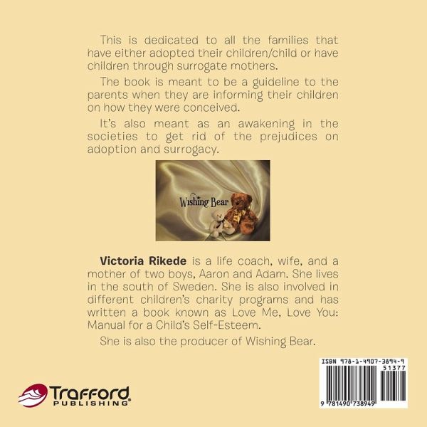 This is dedicated to all the families that have either adopted their children/child or have children through surrogate mothers. The book is meant to be a guideline to the parents when they are informing their children on how they were conceived. It's also meant as an awakening in the societies to get rid of the prejudices on adoption and surrogacy.