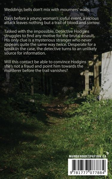 Weddings bells don't mix with mourners' wails. Days before a young woman's joyful event, a vicious attack leaves nothing but a trail of blood and sorrow. Tasked with the impossible, Detective Hodgins struggles to find any motive for the brutal assault. His only clue is a mysterious stranger who never appears quite the same way twice. Desperate for a break in the case, the detective turns to an unlikely source for information. Will this contact be able to convince Hodgins she's not a fraud and point him towards the murderer before the trail vanishes?