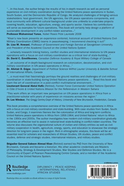 "... In this book, the author brings the results of his in-depth research as well as personal experience on civil-military coordination during the United Nations peace operations in Sudan, South Sudan, and the Democratic Republic of Congo. He analyzed challenges of bringing various stakeholders: host government, the UN agencies, the UN peace operations components, and local community with different cultural background under one umbrella to undertake projects covering health, education, agriculture, energy, and sports sector. I believe his contributions will serve as examples for future operations. This book will certainly help design a platform of sustainable development in any conflict-ridden scenarios..."