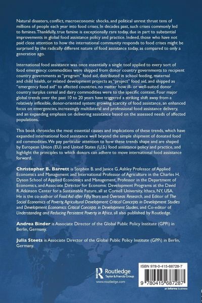 This book chronicles the most essential causes and implications of these trends, which have expanded international food assistance well beyond the simple shipment of donated food aid commodities. We pay particular attention to how these trends shape and are shaped by European Union (EU) and United States (U.S.) food assistance policy and practice, and highlight the principles to which donors can adhere to move international food assistance forward.