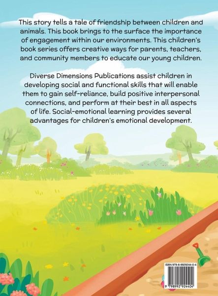 This story tells a tale of friendship between children and animals. It brings to the surface the importance of engagement within our environments. This children's book series offers creative ways for parents, teachers, and community members to educate our young children. Diverse Dimensions Publications assists children in developing social and functional skills that will enable them to gain self-reliance, build positive interpersonal connections, and perform at their best in all aspects of life. Social-emotional learning provides several advantages for children's emotional development.