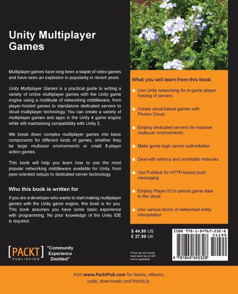 Unity is a game development engine that is fully integrated with a complete set of intuitive tools and rapid workflows used to create interactive 3D content. This is a practical guide to writing a variety of online multiplayer games with the Unity game engine, using a multitude of networking middleware from player-hosted games to standalone dedicated servers to cloud multiplayer technology.