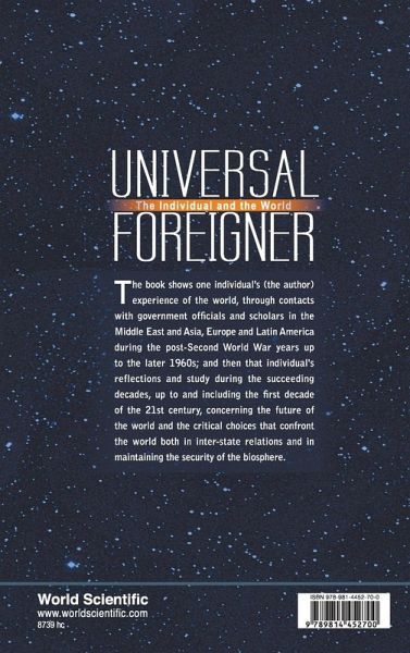 The book shows one individual's (the author) experience of the world, through contacts with government officials and scholars in the Middle East and Asia, Europe and Latin America during the post-Second World War years up to the later 1960s; and then that individual's reflections and study during the succeeding decades, up to and including the first decade of the 21st century, concerning the future of the world and the critical choices that confront the world both in inter-state relations and in maintaining the security of the biosphere.