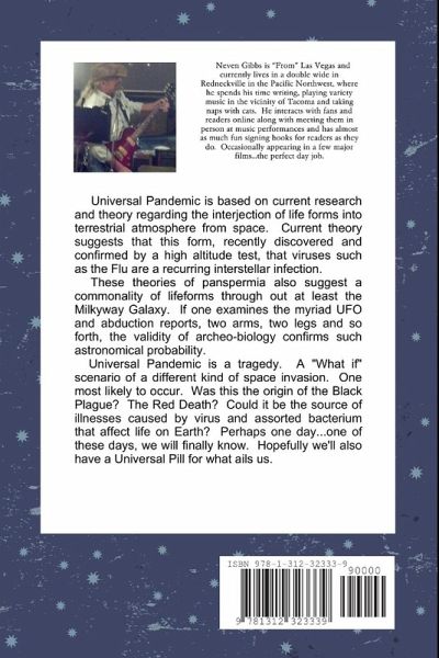 Universal Pandemic, based on current cross science research, is a worldwide tragedy. Going from location to location over time, it covers the effects of Humanity to deal with a plague that could wipe out all life on Earth.