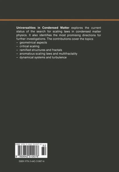 Universality is one of the fascinating features of condensed matter physies: it is the property whereby systems of radieally different composition and structure ex hibit similar behavior. In the mid-1960s the word entered usage to express the fact that the equations of state of several substances could be mapped onto one another near the critical point: critieal universality. Renormalization group theory in the early 1970s provided both an explanation and a sharper definition of universality. Systems with similar behavior - universality classes - correspond to the same fixed point of a…mehr