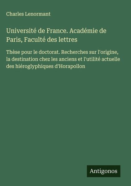 Réimpression inchangée de l'édition originale de 1838. La maison d'édition Antigonos est spécialisée dans la publication de réimpressions de livres historiques. Nous veillons à ce que ces ouvrages soient mis à la disposition du public dans de bonnes conditions afin de préserver leur patrimoine culturel.