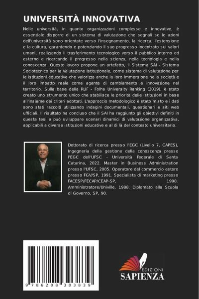 Nelle università, in quanto organizzazioni complesse e innovative, è essenziale disporre di un sistema di valutazione che segnali se le azioni dell'università sono orientate verso l'insegnamento, la ricerca, l'estensione e la cultura, garantendo e potenziando il suo progresso incentrato sui valori umani, realizzando il trasferimento tecnologico verso il pubblico interno ed esterno e ricercando il progresso nella scienza, nella tecnologia e nella conoscenza. Questo lavoro propone un artefatto, il Sistema SAI - Sistema Sociotecnico per la Valutazione Istituzionale, come sistema di valutazione per le istituzioni educative che valorizza anche la loro immersione nella società e il loro impatto reale come agente di cambiamento e innovazione nel territorio. Sulla base della RUF - Folha University Ranking (2019), è stato creato uno strumento unico che stabilisce le priorità delle istituzioni in base all'insieme dei criteri adottati. L'approccio metodologico è stato misto e i dati sono stati raccolti utilizzando indagini documentali, questionari e siti web ufficiali. Il risultato ha concluso che il SAI ha raggiunto gli obiettivi definiti in questa tesi e può sviluppare scenari dinamici di valutazione organizzativa, applicabili a diverse istituzioni educative e al di là del contesto universitario.
