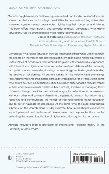 Universitas: Why Higher Education Must Be International intervenes with urgency in the debate on the virtues, and pitfalls of internationalizing higher education. It unites voices of academics from around the globe with considerable experience with international higher education in a well-considered defense of the university as a public space transcending locality, counteracting parochialism, and defending the quality of scholarship. All authors writing in this volume have themselves followed international trajectories, across different parts of the world. At the same time, all are now settled academics. They have been observing the relevant trends in their work environments and have been actively involved in managing them. Universitas brings their informed auto-ethnographic reflections in conversation with each other and connects them into a systematic analysis that allows us to recognize and communicate the virtues of internationalizing higher education and to better navigate its challenges. At the same time, the auto-biographical subtexts of the contributions vividly illustrate how international experiences impact personal and professional development and help make the case for defending the internationalization of higher education against its detractors.