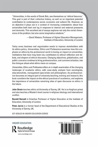 John Strain teaches ethics at Surrey University, UK. He is an Anglican priest and also teaches a Master's level course in religious ideology and international conflict. Ronald Barnett is Professor of Higher Education at the Institute of Education, University of London and Pro-Director for Longer Term Strategy. Peter Jarvis is a former head of the Department of Educational Studies at the University of Surrey and Adjunct Professor, Department of Adult Education, University of Georgia, USA.