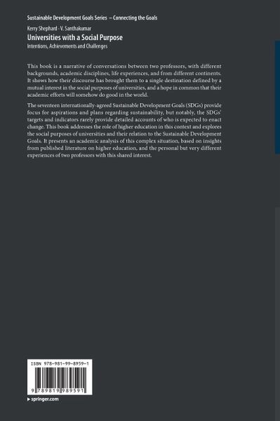 The seventeen internationally-agreed Sustainable Development Goals (SDGs) provide focus for aspirations and plans regarding sustainability, but notably, the SDGs' targets and indicators rarely provide detailed accounts of who is expected to enact change. This book addresses the role of higher education in this context and explores the social purposes of universities and their relation to the Sustainable Development Goals. It presents an academic analysis of this complex situation, based on insights from published literature on higher education, and the personal but very different experiences oftwo professors with this shared interest.