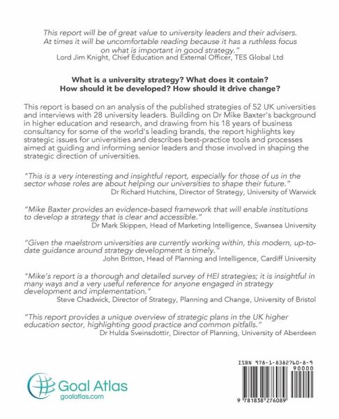 What is a strategy? What does it contain? How should it be developed? How should it drive change? Based on an analysis of the published strategies of 52 UK universities and interviews with 28 university leaders, this report combines evidence-based strategy research with recommendations on best-practice strategy design. It presents, for the first time, the Strategy Design Framework derived from the author's 10,000+ hours of strategy consulting with some of the worlds biggest brands. This framework provides a simple yet practical tool for managing strategy across the entire strategy lifecycle: development, validation, deployment, monitoring and governance. Whilst the report aims to help senior leaders and those involved in shaping the strategic direction of universities to make sense of strategy, it also serves as a practical handbook for anyone involved in strategy design for business. It tackles some of the big questions for strategic planners such as what are the key purposes a strategy should serve in large, complex 21st century organisations, and what components should a good strategy contain to serve those purposes well?
