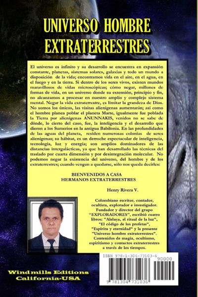 El universo es infinito y su desarrollo se encuentra en expansión continua. Planetas, sistemas solares, galaxias y todo un mundo a disposición de la vida; encontramos vida en el aire, en el agua, en el fuego y en la tierra. La vida en la tierra es relativamente joven, existe vida en muchos planetas de esta y de otras galaxias; vidas quizás más antiguas y de inteligencias y desarrollo superior al hombre. Los extraterrestres, han poblado y seguirán poblando la tierra, guían nuestros pasos, nos dan poco a poco la tecnología para la supervivencia; pero también, están vigilantes a nuestro comportamiento. Desde tiempos remotos nos visitan, y los avistamientos se acrecentarán porque vendrán de diferentes mundos; nuestros mentores y los invasores. La vida extraterrestre está ahí, y hemos desaprovechado sus visitas para aprender de ellos, y para recibir sus mensajes de desarrollo y de alerta. Debemos terminar las guerras internas en el planeta y prepararnos para la invasión de los mundos.