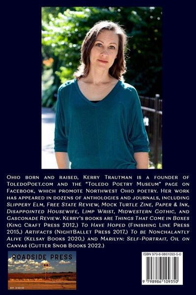 a full-length poetry collection by Kerry Trautman. Unknowable Things is a breathtaking collection of poetry by Kerry Trautman that explores the depths of the human experience with stark honesty and unflinching candor. Through evocative and powerful language, Trautman masterfully crafts the weight of human existence into poetry that is universal, self-reflective, and outright beautiful. Each poem in this collection is a testament to Trautman's skill at pulling deeper meaning out of the everyday ordinary, and her words are written with a smooth, polished, and tender touch. From start to finish, Unknowable Things is seamless, with not a word wasted or misplaced. This collection is perfect for readers who are looking for poetry that speaks to the human condition in a powerful and relatable way. Whether you are an avid reader of poetry or new to the genre, we hope that these words will resonate with you and leave a lasting impression on your heart. So take a moment to slow down and savor each verse, allowing the rhythm and imagery to transport you to a world of introspection and self-discovery. We hope you will find solace and inspiration in these pages, and that you will return to them again and again as you navigate your own journey through the mysteries of the human experience. Ohio born and raised, Kerry Trautman is a founder of ToledoPoet.com and the "Toledo Poetry Museum" page on Facebook, which promote Northwest Ohio poetry. Her work has appeared in dozens of anthologies and journals, including Slippery Elm, Free State Review, Mock Turtle Zine, Paper & Ink, Disappointed Housewife, Limp Wrist, Midwestern Gothic, and Gasconade Review. Kerry's books are Things That Come in Boxes (King Craft Press 2012,) To Have Hoped (Finishing Line Press 2015,) Artifacts (NightBallet Press 2017,) To be Nonchalantly Alive (Kelsay Books 2020,) and Marilyn: Self-Portrait, Oil on Canvas (Gutter Snob Books 2022.)