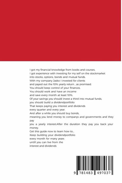 I got my financial knowledge from books and courses, I got experience with investing for my self on the stockmarket into stocks, options, bonds and mutual funds. With my company Jasko I invested for clients and payed out the 10% yearly return , as promised. You should keep control of your finances. You should work and have an income and save every month at least 10%. Of your savings you should invest a third into mutual funds, you should build a dividendportfolio That keeps paying you interest and dividends every quarter and every year. And after a while you should buy bonds, meaning you lend money to companys and governments and they pay you a yearly interest.After the duration they pay you back your money. Get this guide now to learn how to... Keep building your dividendportfolio every month for many years untill you can live from the interest and dividends