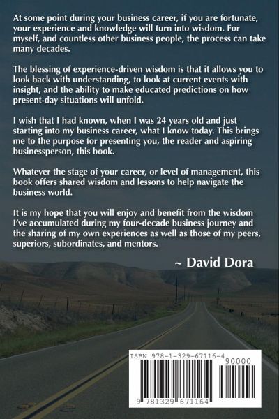 If one is fortunate during a business career, at some point, experience and knowledge become wisdom. For countless business people, this process can take many years. The blessing of experience-driven wisdom is that it enables you to look back with understanding and to view current events with insight. Wisdom helps to more accurately predict how present-day situations may unfold. Whatever the stage of your career, or level of management, this book offers shared wisdom and lessons to help navigate the business world.