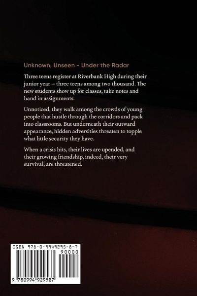 Three teens register at Riverbank High during their junior year-three among two thousand. The new students show up for classes, take notes and hand in assignments. Unnoticed, they walk among the crowds of young people that hustle through the corridors and pack into classrooms. But underneath their outward appearance, hidden adversities threaten to topple what little security they have. When a crisis hits, their lives are upended, and their growing friendship, indeed, their very survival, are threatened. The novel is dedicated to all children and youth whose hidden trauma goes unknown and unseen. Unknown, Unseen-Under the Radar, is the first book the new fiction series by Linda Anne Smith. She is the author of Terrifying Freedom and its stand-alone sequel, Dawn Through the Shadows.