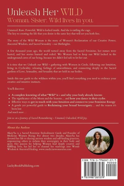 Woman. Sister. Wild lives in you. Untamed. Raw. Powerful. Wild is locked inside. And she is rattling the cage. The key to creating the life that you desire is the same key that will set you both free. The story of the Wild Woman is the story of Women's Reclamation of our Creative Power, Ancestral Wisdom, and Sacred Sexuality - our Birthrights. A few thousand years ago, the world turned away from the Sacred Feminine, her statues were buried, and her stories burned and exiled. We Women had to keep our Wild locked in the underground caves of our being, because we didn't feel safe to let her out.…mehr