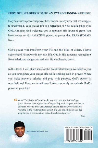 Finally, after years of anticipation, Horace Williams Jr. has written and published a follow-up to his award-winning book on the power of prayer. In this Study Guide, Horace wants to encourage, inspire, and challenge readers to take an honest and reflective look at their prayer lives. Having survived and thrived through his complex life experiences, Horace, with his deep understanding of the power of prayer, knows that purposeful and powerful prayer enhances and develops one's relationship with God. Prayer has life-changing power, and he wants to help you UNLEASH it!