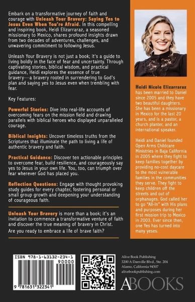 Embark on a transformative journey of faith and courage with Unleash Your Bravery: Saying Yes to Jesus Even When You're Afraid. In this compelling and inspiring book, Heidi Elizarraraz, a seasoned missionary to Mexico, shares profound insights drawn from two decades of adventures, challenges, and unwavering commitment to following Jesus. Unleash Your Bravery is not just a book; it's a guide to living boldly in the face of fear and uncertainty. Through captivating stories, biblical wisdom, and practical guidance, Heidi explores the essence of true bravery-a bravery rooted in surrendering to God's plan and saying yes to Jesus even when trembling with fear.