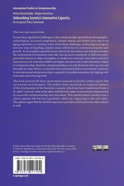 In Unleashing Society s Innovative Capacity: An Integrated Policy Framework, Pontus Braunerhjelm and Magnus Henrekson present a bold and comprehensive vision for fostering innovation-led economic growth. ... Through a blend of theoretical insights, empirical evidence, and policy prescriptions, the book offers a roadmap for addressing contemporary economic challenges. this book outlines how societies can continuously learn, adapt, and thrive. In an era of rapid change and mounting challenges, its insights are both timely and transformative. (Miriam Bird, Administrative Science Quarterly, May 9, 2025)
