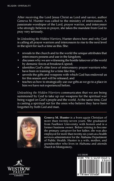 After receiving the Lord Jesus Christ as Lord and savior, author Geneva M. Hunter was called to the ministry of intercession. A passionate worshiper of the Lord, prayer warrior, and intercessor who strongly believes in prayer, she takes the mandate from God to pray very seriously. In Unleashing the Hidden Warriors, Hunter shows how and why God is calling all prayer warriors and intercessors to rise to the next level in the spirit for such a time as this. She: ¿ reveals to the church and to the world the unique attributes that intercessors possess and use in the kingdom; ¿ discusses why we are witnessing the hostile takeover of the world by demonic forces at breakneck speed; ¿ identifies God's elite force of intercessory prayer warriors who have been in training for a time like this; ¿ unveils the gifts and weapons with which God has endowed us for this season and will be released; and ¿ teaches us how to strategically use our gifts as we go to a place in him we have not experienced before. Unleashing the Hidden Warriors communicates that we are being summoned by God to take up our weapons for the spiritual war being waged on God's people and the world. At the same time, God is casting a spiritual net for the ones who believe they have been forgotten by both God and man.