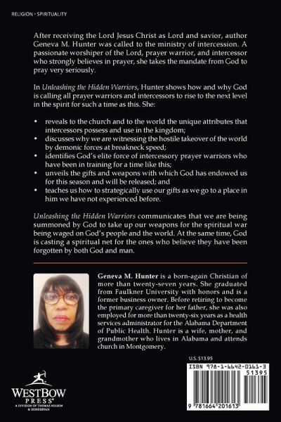 After receiving the Lord Jesus Christ as Lord and savior, author Geneva M. Hunter was called to the ministry of intercession. A passionate worshiper of the Lord, prayer warrior, and intercessor who strongly believes in prayer, she takes the mandate from God to pray very seriously. In Unleashing the Hidden Warriors, Hunter shows how and why God is calling all prayer warriors and intercessors to rise to the next level in the spirit for such a time as this. She: ¿ reveals to the church and to the world the unique attributes that intercessors possess and use in the kingdom; ¿ discusses why we are witnessing the hostile takeover of the world by demonic forces at breakneck speed; ¿ identifies God's elite force of intercessory prayer warriors who have been in training for a time like this; ¿ unveils the gifts and weapons with which God has endowed us for this season and will be released; and ¿ teaches us how to strategically use our gifts as we go to a place in him we have not experienced before. Unleashing the Hidden Warriors communicates that we are being summoned by God to take up our weapons for the spiritual war being waged on God's people and the world. At the same time, God is casting a spiritual net for the ones who believe they have been forgotten by both God and man.
