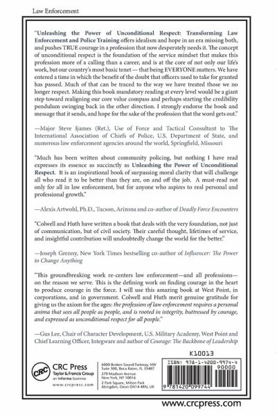 Every day, police officers face challenges ranging from petty annoyances to the risk of death in the line of duty. Coupled with these difficulties is, in some cases, lack of community respect for the officers despite the dangers these men and women confront while protecting the public. Exploring issues of courage, integrity, leadership, and character, Unleashing the Power of Unconditional Respect examines ways to effect organizational change that helps police officers inspire community trust and support with every citizen contact. The book begins by discussing why courage is often lacking in a bravery-rich culture such as law enforcement. It demonstrates how personal integrity is the foundation for unconditional respect, and provides reasons why having and maintaining integrity are some of the most difficult struggles for individuals and law enforcement officers in particular. It enumerates some of the tactical benefits of unconditional respect as well as interpersonal benefits. Then, the book explains the concept of anima-based leadership core competencies. It examines how unconditional respect affects law enforcement's interaction with the communities in which it operates and describes how it creates and builds high character. Finally, the book explores way to influence an organizational culture toward unconditional respect. There is a blog dedicated to the book. Jack Colwell also maintains a blog entitled Human Factors in Law Enforcement. The authors' animated Youtube video discusses relationships between police and communities.