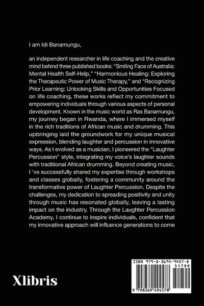 I am Idi Banamungu, an independent researcher in life coaching and the creative mind behind three published books: "Smiling Face of Australia: Mental Health Self-Help," "Harmonious Healing: Exploring the Therapeutic Power of Music Therapy," and "Recognizing Prior Learning: Unlocking Skills and Opportunities Focused on life coaching, these works reflect my commitment to empowering individuals through various aspects of personal development. Known in the music world as Ras Banamungu, my journey began in Rwanda, where I immersed myself in the rich traditions of African music and drumming. This upbringing laid the groundwork for my unique musical expression, blending laughter and percussion in innovative ways. As I evolved as a musician, I pioneered the "Laughter Percussion" style, integrating my voice's laughter sounds with traditional African drumming. Beyond creating music, I 've successfully shared my expertise through workshops and classes globally, fostering a community around the transformative power of Laughter Percussion. Despite the challenges, my dedication to spreading positivity and unity through music has resonated globally, leaving a lasting impact on the industry. Through the Laughter Percussion Academy, I continue to inspire individuals, confident that my innovative approach will influence generations to come