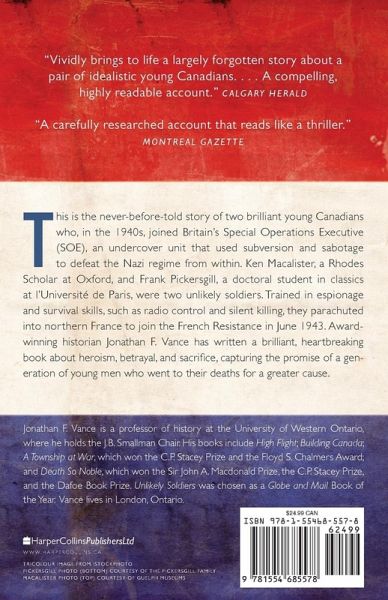 Published to rave reviews, this is the never-before-told story of two brilliant young Canadians who became unlikely soldiers. Ken Macalister was a Rhodes scholar at Oxford. Frank Pickersgill was a doctoral student in classics at l'Université de Paris. Together, they volunteered for the British SOE and soon found themselves being trained to kill. On June 15, 1943, with false identities, they parachuted into the Rhone Valley, but there were double agents within the Resistance; too soon Macalister and Pickersgill were captured, tortured and put on a train for Germany. Vance has written a brilliant, heartbreaking book about heroism, betrayal and sacrifice, capturing the promise of a generation of young men who went to their deaths for a greater cause.