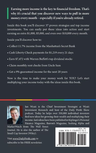 Earning more income is the key to financial freedom. That's why it's crucial that you discover new ways to pull in more money every month - especially if you're already retired. Inside you'll discover 37 proven strategies and top income investments. You can easily put these ideas into action and start earning an extra $1,000, $5,000, and even over $10,000 every month. Plus, you'll get details revealing how to:Collect 11.7% income from the Manhattan's Secret Bank Cash Liberty Check payments for $1,219 every 21 days Earn $7,472 with Warren Buffett's top dividend stocks Claim monthly rent checks from Uncle Sam Get a 9% guaranteed income for the next 20 years Now is the time to make your money work for YOU! Let's start multiplying your income today.