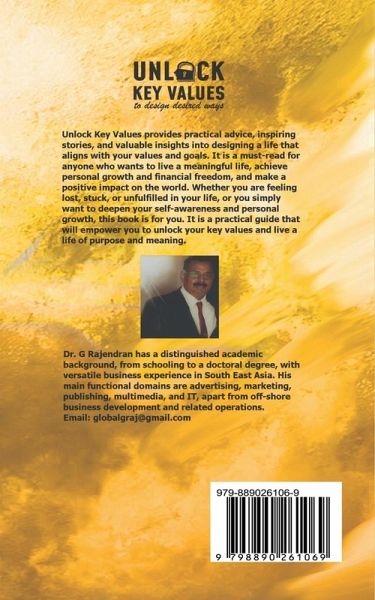 Unlock Key Values provides practical advice, inspiring stories, and valuable insights into designing a life that aligns with your values and goals. It is a must-read for anyone who wants to live a meaningful life, achieve personal growth and financial freedom, and make a positive impact on the world. Whether you are feeling lost, stuck, or unfulfilled in your life, or you simply want to deepen your self-awareness and personal growth, this book is for you. It is a practical guide that will empower you to unlock your key values and live a life of purpose and meaning.
