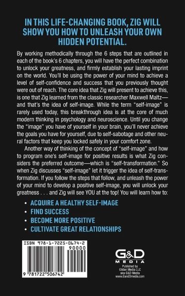 In this life-changing book, Zig will show you how to unleash your own hidden potential. By working methodically through the 6 steps that are outlined in each of the book's 6 chapters, you will have the perfect combination to unlock your greatness, and firmly establish your lasting imprint on the world. You'll be using the power of your mind to achieve a level of self-confidence and success that you previously thought were out of reach. The core idea that Zig will present to achieve this, is one that Zig learned from the classic researcher Maxwell Maltz---and that's the idea of self-image. While the term "self-image" is rarely used today, this breakthrough idea is at the core of much modern thinking in psychology and neuroscience. Until you change the "image" you have of yourself in your brain, you'll never achieve the goals you have for yourself, due to self-sabotage and other neural factors that keep you locked safely in your comfort zone. Another way of thinking of the concept of "self-image" and how to program one's self-image for positive results is what Zig considers the preferred outcome----which is "self-transformation." So when Zig discusses "self-image" let it trigger the idea of self-transformation. If you follow the steps that follow, and unleash the power of your mind to develop a positive self-image, you will unlock your greatness.....and Zig will see YOU at the top! You will learn how to: 1. Acquire a healthy self-image 2. Find success 3. Become more positive 4. Cultivate great relationships