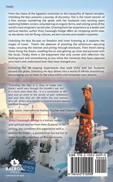 From the chaos of the Egyptian revolution to the tranquility of Japan's temples, Unlocking the Keys presents a journey of discovery. This is the travel memoir of a Kiwi woman wandering the globe with her husband-two exciting years exploring hidden corners, volunteering on organic farms, and visiting some of the world's most enigmatic sacred sites. Drawing from her experience as a healer and spiritual teacher, author Vicky Cavanagh-Hodge off ers an intriguing world view, as she delves into far-flung cultures, ancient marvels and modern mysteries. Unlocking the Keys focuses on freedom and inner knowing as it explores the stages of travel. There's the pleasure of planning the adventure-perusing maps, scouring the internet and poring through brochures. Then there's being there: living the dream, smelling the air and getting up close and personal with the locals. Finally, there is the enjoyment that only comes with reflection: the looking back and remembering as you relive the moments that have captured your heart and understand how they have changed you. Following the life-shaping experiences that took Vicky and her husband around the globe, Unlocking the Keys delves into a world of infi nite possibilities, encouraging you to listen to the voice within and remember your dreams. "Unlocking the Keys is a story of today and today's world seen through the traveller's eye, but it is much more than this. It is a connection to the soul and an entry to the secrets of past civilizations and past lives that are still within the soul memory of us all. Vicky's story touches a chord of ancient memory and inner knowing." -Judy Satori, International Author, Teacher and Channel