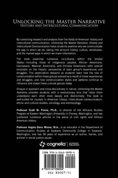 By combining research and analysis from the fields of American history and intercultural communication, Unlocking the Master Narrative: History and Intercultural Communication helps students examine why we communicate the way in which we do, taking into account history, culture, worldviews, and the myriad ways in which we share information. The book examines numerous co-cultures within the United States—including those of indigenous peoples, African Americans, Caucasians, Mexican Americans, and Chinese Americans—with special emphasis on the historic perspective of each group’s experiences and struggles. The examination deepens as students learn how the role of communication within these groups evolved as a result of those experiences and struggles, and how communication styles and patterns continue to influence and shape these cultural groups today. Unique in approach and cross-disciplinary in nature, Unlocking the Master Narrative provides students with a revolutionary lens that helps them understand each other more deeply and distinctively. The book is well-suited for courses in American history, intercultural communication, ethnic and cultural studies, sociology, and anthropology. Scott M. Finnie, Ph.D., is director of the Africana Studies Program at Eastern Washington University in Cheney, Washington, and has published numerous articles in the arena of civil rights and African American history. Angela Davis Wizner, M.A., is an educator in the Department of Communication Studies at Spokane Community College in Spokane, Washington, and has 30 years of experience as an author, trainer, and activist in social justice issues.