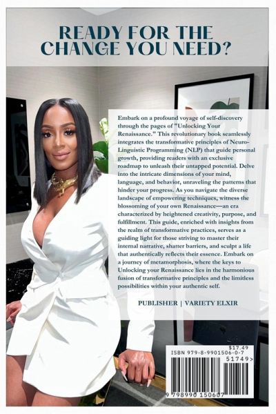 Embark on a profound voyage of self-discovery through the pages of "Unlocking Your Renaissance." This revolutionary book seamlessly integrates the transformative principles of Neuro-Linguistic Programming (NLP) that guide personal growth, providing readers with an exclusive roadmap to unleash their untapped potential. Delve into the intricate dimensions of your mind, language, and behavior, unraveling the patterns that hinder your progress. As you navigate the diverse landscape of empowering techniques, witness the blossoming of your own Renaissance-an era characterized by heightened creativity, purpose, and fulfillment. This guide, enriched with insights from the realm of transformative practices, serves as a guiding light for those striving to master their internal narrative, shatter barriers, and sculpt a life that authentically reflects their essence. Embark on a journey of metamorphosis, where the keys to Unlocking your Renaissance lies in the harmonious fusion of transformative principles and the limitless possibilities within your authentic self.