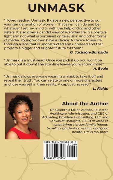 Unmask by Dr. Calenthia Yvette Miller centers on three attractive professionals and their search for healing. Full of sensual detail and rollicking conversation, the narrative explores the lives of Anya McMichael, Royce Blackmon, and Sebastián Collins as they cope with past traumas while trying to learn what they really want from life. The protagonist is Anya, a successful executive who is forced by migraines, exhaustion, and finally, a concussion, to take time for desperately needed self-care, and to cope with her grief for her father. With the help of her friends and colleagues, Leah and Abbey, she begins focusing on her own needs and desires during a leave of absence. Meanwhile, she is pursued by two extremely handsome men and begins to form a daughter-like bond with an elegant dress designer who is a bereaved mother. won't be able to put this page-turner down. Now is the time to grab your copy! The Saga begins.....