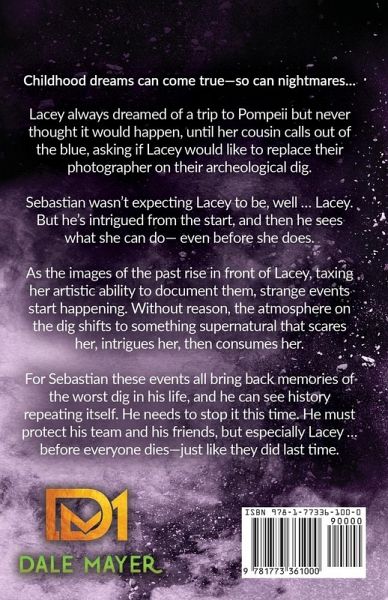 Childhood dreams can come true-so can nightmares... Lacey always dreamed of a trip to Pompeii but never thought it would happen, until her cousin calls out of the blue, asking if Lacey would like to replace their photographer on their archeological dig. Sebastian wasn't expecting Lacey to be, well ... Lacey. But he's intrigued from the start, and then he sees what she can do- even before she does. As the images of the past rise in front of Lacey, taxing her artistic ability to document them, strange events start happening. Without reason, the atmosphere on the dig shifts to something supernatural that scares her, intrigues her, then consumes her. For Sebastian these events all bring back memories of the worst dig in his life, and he can see history repeating itself. He needs to stop it this time. He must protect his team and his friends, but especially Lacey ... before everyone dies-just like they did last time.