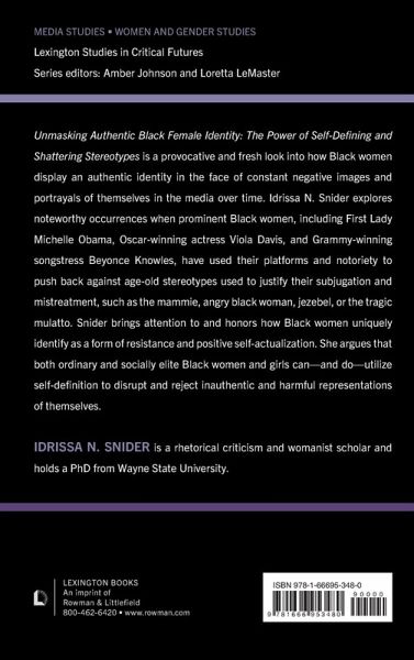 This book is a provocative and fresh look into how Black women display an authentic identity in the face of constant negative images and portrayals of themselves in the media over time. Idrissa N. Snider explores noteworthy occurrences when prominent Black women, including First Lady Michelle Obama, Oscar-winning actress Viola Davis, and Grammy-winning songstress Beyonce Knowles, have used their platforms and notoriety to push back against age-old stereotypes used to justify their subjugation and mistreatment, such as the mammie, angry black woman, jezebel, or the tragic mulatto. Snider emphasizes and honors how Black women uniquely identify as a form of resistance and positive self-actualization and argues that both everyday and socially elite Black women and girls can - and do - utilize self-definition to disrupt and reject inauthentic and harmful representations of themselves.