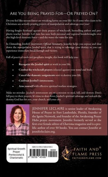 Are You Being Prayed For-Or Preyed On? Do you feel like unseen forces are wreaking havoc on your life? As if some who claim to be Christians are actually praying prayers of manipulation and sabotage over you? Having fought firsthand against these prayers of witchcraft, bestselling author and prophetic teacher Jennifer LeClaire has seen both personal and regional breakthroughs over this high-level demonic force-and she wants the same for you. In Unmasking Jezebel's Intercessors, Jennifer helps you expose and shut down the manipulative Jezebel spirit that is trying to sabotage your destiny so you can experience immediate breakthrough and victory. Full of practical tools and prophetic insight, this book will help you: * Recognize the Jezebel spirit at work in your life. * Combat the witchcraft prayers released against your mind and body. * Cancel the demonic assignments sent to destroy your life. * Confront Jezebel's intercessors. * Arm yourself with effective spiritual warfare strategies. Make no mistake: Jezebel's intercessors are on a mission to steal, kill, and destroy. Don't fall prey to their prayers. It's time to shut down Jezebel's spiritual sabotage and unleash the destiny God has for you, your church, and your city.