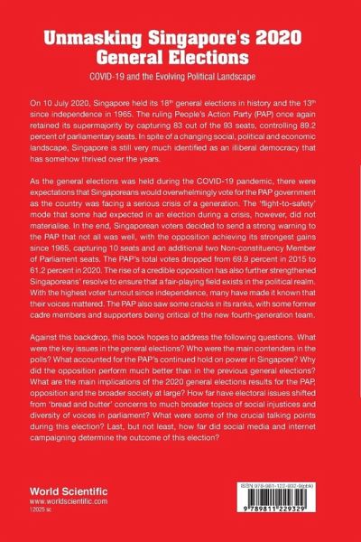 On 10 July 2020, Singapore held its 18th general elections in history and the 13th since independence in 1965. The ruling People's Action Party (PAP) once again retained its supermajority by capturing 83 out of the 93 seats, controlling 89.2 percent of parliamentary seats. In spite of a changing social, political and economic landscape, Singapore is still very much identified as an illiberal democracy that has somehow thrived over the years. As the general elections was held during the COVID-19 pandemic, there were expectations that Singaporeans would overwhelmingly vote for the PAP government as the country was facing a serious crisis of a generation. The 'flight-to-safety' mode that some had expected in an election during a crisis, however, did not materialise. In the end, Singaporean voters decided to send a strong warning to the PAP that not all was well, with the opposition achieving its strongest gains since 1965, capturing 10 seats and an additional two Non-constituency Member of Parliament seats. The PAP's total votes dropped from 69.9 percent in 2015 to 61.2 percent in 2020. The rise of a credible opposition has also further strengthened Singaporeans' resolve to ensure that a fair-playing field exists in the political realm. With the highest voter turnout since independence, many have made it known that their voices mattered. The PAP also saw some cracks in its ranks, with some former cadre members and supporters being critical of the new fourth-generation team. Against this backdrop, this book hopes to address the following questions. What were the key issues in the general elections? Who were the main contenders in the polls? What accounted for the PAP's continued hold on power in Singapore? Why did the opposition perform much better than in the previous general elections? What are the main implications of the 2020 general elections results for the PAP, opposition and the broader society at large? How far have electoral issues shifted from 'bread and butter' concerns to much broader topics of social injustices and diversity of voices in parliament? What were some of the crucial talking points during this election? Last, but not least, how far did social media and internet campaigning determine the outcome of this election?
