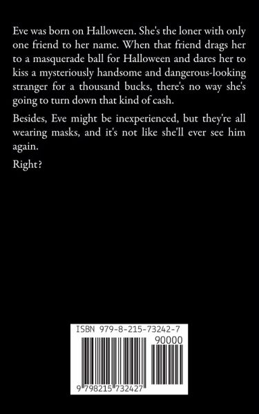 Eve was born on Halloween. She's the loner with only one friend to her name. When that friend drags her to a masquerade ball for Halloween and dares her to kiss a mysteriously handsome and dangerous-looking stranger for a thousand bucks, there's no way she's going to turn down that kind of cash. Besides, Eve might be inexperienced, but they're all wearing masks, and it's not like she'll ever see him again. Right?