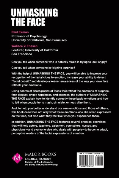 Ekman and Friesen's breakthrough research on the facial expression of emotion is richly illustrated with photographs depicting surprise, fear, disgust, anger, happiness and sadness. The authors explain how to identify these basic emotions correctly and how to tell when people try to mask, simulate or neutralize them. The book features several practical exercises that can help actors, teachers, salesmen, counselors, nurses, law-enforcement personnel and physicians - and everyone else who deals with people - become adept, perceptive readers of the facial expressions of emotions.