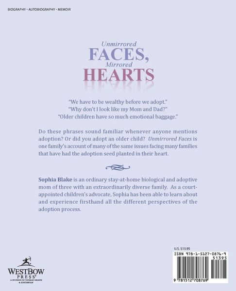 "We have to be wealthy before we adopt." "Why don't I look like my Mom and Dad?" "Older children have so much emotional baggage." Do these phrases sound familiar whenever anyone mentions adoption? Or did you adopt an older child? Unmirrored Faces is one family's account of many of the same issues facing many families that have had the adoption seed planted in their heart.