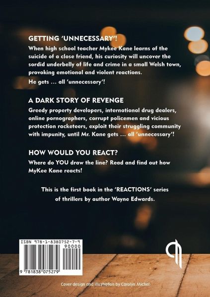 GETTING 'UNNECESSARY'! When high school teacher Mykee Kane learns of the suicide of a close friend, his curiosity will uncover the sordid underbelly of life and crime in a small Welsh town, provoking emotional and violent reactions. He gets … all 'unnecessary'! A DARK STORY OF REVENGE Greedy property developers, international drug dealers, online pornographers, corrupt policemen and vicious protection racketeers, exploit their struggling community with impunity, until Mr. Kane gets … all 'unnecessary'! HOW WOULD YOU REACT? Where do Where do YOU draw the line? Read and find out how MyKee Kane reacts!