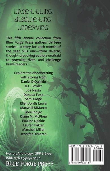 Unsettling. Disquieting. Unnerving. This fifth annual collection from Blue Forge Press gathers thirteen stories-a story for each month of the year plus one-from diverse, thought-provoking authors unafraid to provoke, rivet, and challenge brave readers. Explore the disconcerting with stories from Daniel DiQuinzio D.L. Fowler Joe Nasta Dakoda Foxx Sami Ridge Ellen Jordis Lewis Maxwell DiMarco Bree Indigo Diane M. McPhee Pauline Ugalde Lauren Patzer Marshall Miller Jennifer DiMarco