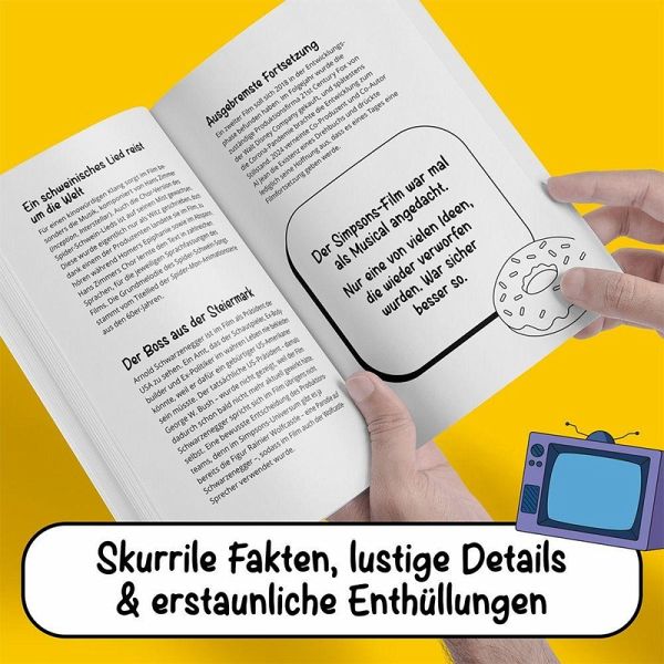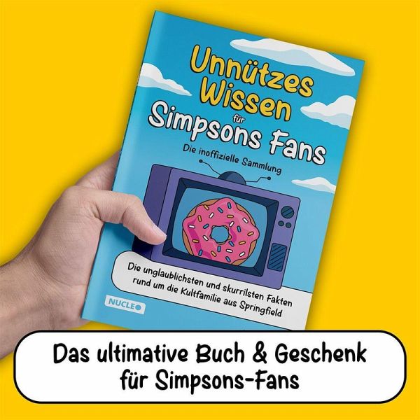 Ay, caramba! Simpsons-Fans werden staunenDieses Buch ist randvoll mit überflüssigem - und genau deshalb so herrlich unterhaltsamem - Wissen rund um die gelbe Kultfamilie aus Springfield.Schon gewusst?Homers ikonisches "D'Oh!" ("Nein!") stand so nie im Drehbuch und war ein improvisierter Einfall seines Synchronsprechers.Jede Simpsons-Figur hat vier Finger pro Hand - außer Gott, der mit fünf gezeichnet wird.Die Sauggeräusche, die Maggie mit ihrem Schnulli macht, hat Simpsons-Schöpfer Matt Groening selbst aufgenommen.Duff-Bier gibt es auch in echt, sogar nach deutschem Reinheitsgebot gebraut.Gelb, schräg, genialÜber 400 Fun-Facts und skurrile Wissenshappen aus dem gesamten Simpsons-Kosmos sorgen für spannende Unterhaltung und liefern jede Menge "Aha"-Momente.Das A-Z der skurrilen Simpsons-FaktenVon der TV-Serie über den Kinofilm bis zu Fan-Aktionen - tauche ein in die Welt des gelben Wahnsinns und erlebe auf jeder Seite neue Überraschungen, Anspielungen und Insider-Infos.Ein Must-Have für FansOb als Geschenk, Nachschlagewerk oder einfach zum Schmökern - dieses Buch gehört in jede Sammlung von Simpsons-Fans.Highlights:- Über 400 Fun-Facts - kuriose, lustige und verblüffende Infos aus dem gesamten Simpsons-Universum- Von Apu bis Willie - Insider-Wissen zu Charakteren, Gastauftritten, Episoden & Merch- Für Fans jeden Alters - perfekt zum Staunen, Schmunzeln und Weitererzählen- Das ideale Geschenk - für Geburtstage, Weihnachten oder einfach soDas ultimative Buch & Geschenk für Simpsons-FansMach dich bereit für einen Lesetrip durch das verrückteste Städtchen der Fernsehgeschichte - voller skurriler Fakten. Jetzt holen und staunen!