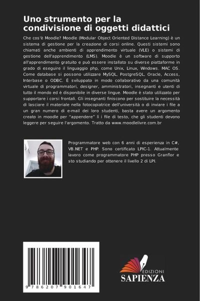Che cos'è Moodle? Moodle (Modular Object Oriented Distance Learning) è un sistema di gestione per la creazione di corsi online. Questi sistemi sono chiamati anche ambienti di apprendimento virtuale (VLE) o sistemi di gestione dell'apprendimento (LMS). Moodle è un software di supporto all'apprendimento gratuito e può essere installato su diverse piattaforme in grado di eseguire il linguaggio php, come Unix, Linux, Windows. MAC OS. Come database si possono utilizzare MySQL, PostgreSQL, Oracle, Access, Interbase o ODBC. È sviluppato in modo collaborativo da una comunità virtuale di programmatori, designer, amministratori, insegnanti e utenti di tutto il mondo ed è disponibile in diverse lingue. Moodle è stato utilizzato per supportare i corsi frontali. Gli insegnanti finiscono per sostituire la necessità di lasciare il materiale nella fotocopiatrice dell'università o di inviare i file a un gran numero di e-mail dei loro studenti, basta avere un argomento creato in moodle per ¿appendere¿ lì i file di testo, che gli studenti devono leggere per seguire l'argomento. Tratto da www.moodlelivre.com.br