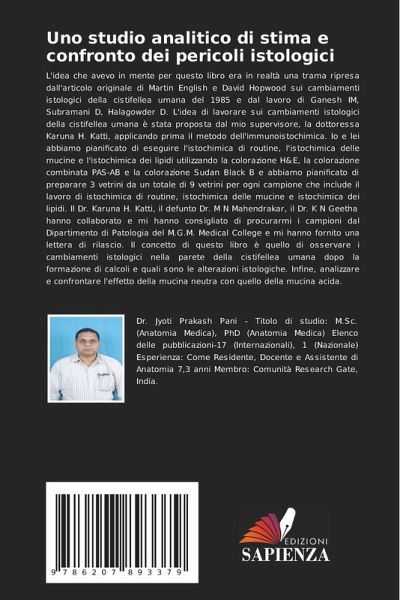 L'idea che avevo in mente per questo libro era in realtà una trama ripresa dall'articolo originale di Martin English e David Hopwood sui cambiamenti istologici della cistifellea umana del 1985 e dal lavoro di Ganesh IM, Subramani D, Halagowder D. L'idea di lavorare sui cambiamenti istologici della cistifellea umana è stata proposta dal mio supervisore, la dottoressa Karuna H. Katti, applicando prima il metodo dell'immunoistochimica. Io e lei abbiamo pianificato di eseguire l'istochimica di routine, l'istochimica delle mucine e l'istochimica dei lipidi utilizzando la colorazione H&E, la colorazione combinata PAS-AB e la colorazione Sudan Black B e abbiamo pianificato di preparare 3 vetrini da un totale di 9 vetrini per ogni campione che include il lavoro di istochimica di routine, istochimica delle mucine e istochimica dei lipidi. Il Dr. Karuna H. Katti, il defunto Dr. M N Mahendrakar, il Dr. K N Geetha hanno collaborato e mi hanno consigliato di procurarmi i campioni dal Dipartimento di Patologia del M.G.M. Medical College e mi hanno fornito una lettera di rilascio. Il concetto di questo libro è quello di osservare i cambiamenti istologici nella parete della cistifellea umana dopo la formazione di calcoli e quali sono le alterazioni istologiche. Infine, analizzare e confrontare l'effetto della mucina neutra con quello della mucina acida.