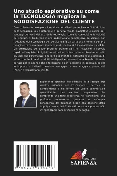 Questo lavoro è un'esplorazione di come i clienti percepiscono l'introduzione della tecnologia in un ristorante a servizio rapido. L'obiettivo è capire se i vantaggi derivanti dall'uso della tecnologia, come la comodità e la velocità del servizio, si traducono in una soddisfazione complessiva del cliente. Con l'adozione della tecnologia self-service (SST) da parte di un numero sempre maggiore di consumatori, il processo di vendita si è inevitabilmente evoluto. Dall'ordinazione del pasto preferito tramite SST nei ristoranti a servizio rapido all'acquisto di biglietti aerei online, i clienti stanno diventando molto più abili nel personalizzare le loro esperienze di consumo e di acquisto. Si stima che l'utilizzo di prodotti intelligenti e connessi avrà benefici di vasta portata per le aziende che li forniscono e per l'economia in generale, poiché le imprese e i clienti trarranno vantaggio da una maggiore produttività (Porter e Heppelmann, 2014).